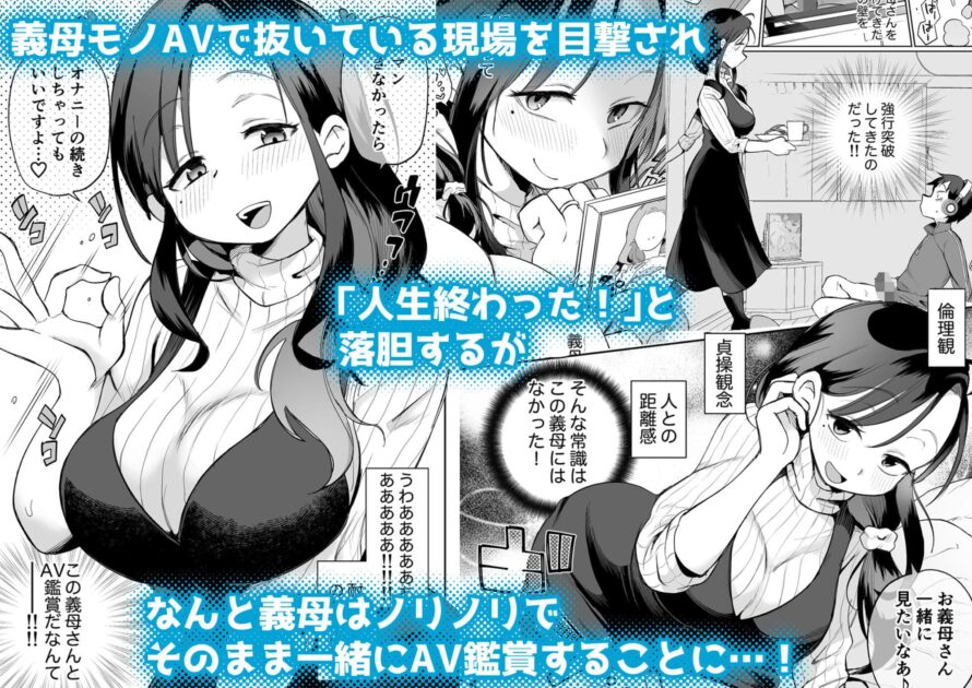 ある日、義母モノAVを見てオナニーしているところを目撃され、「人生終わった!」と落胆するが、なんと義母はノリノリでそのまま一緒にAV鑑賞することに…!